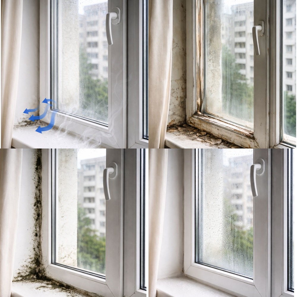 Pastāvīgi aizsvīstoši logi ir viena no biežākajām novecojušu konstrukciju pazīmēm.
